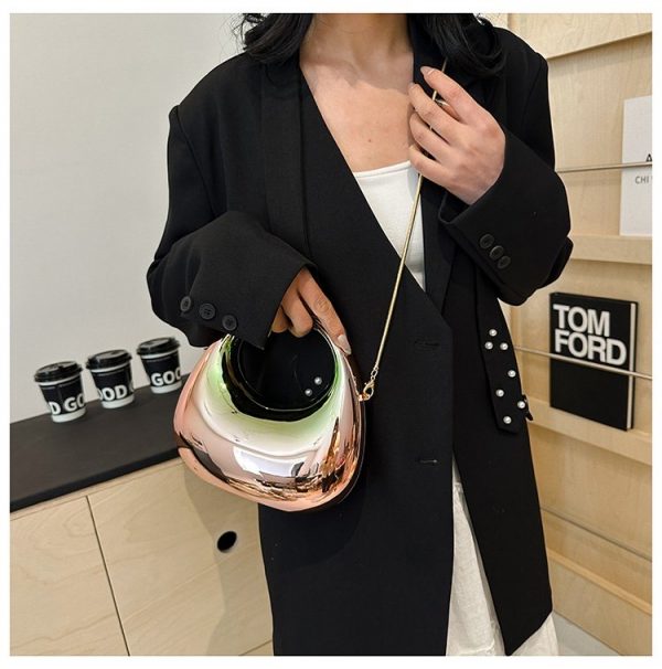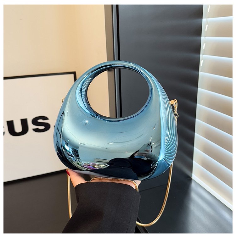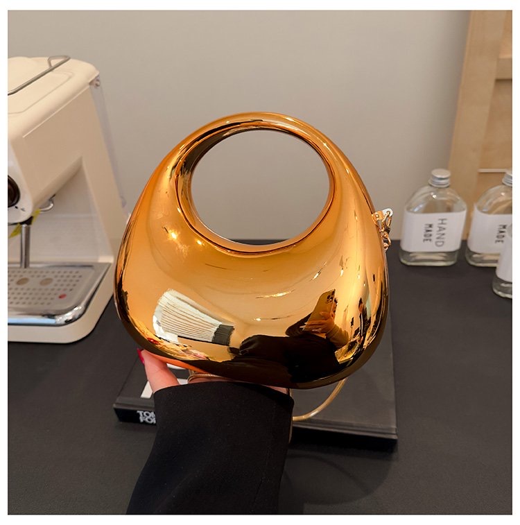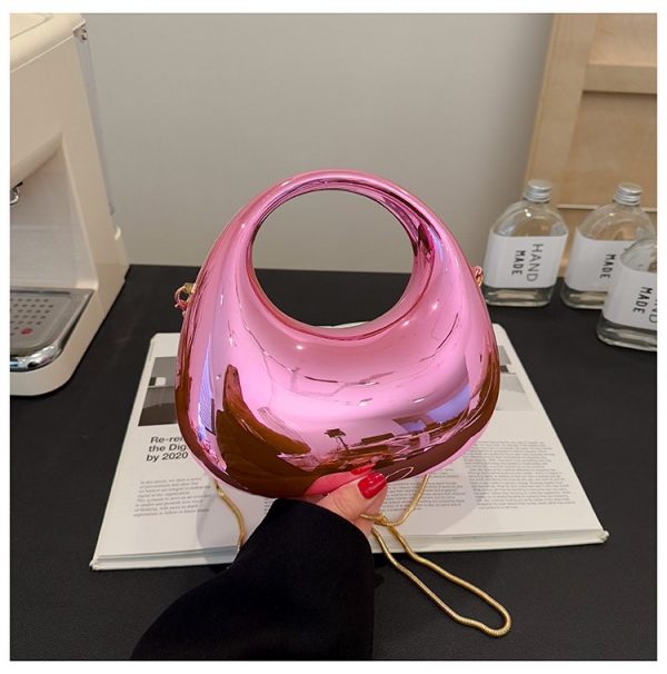 Designed with a chic round handle, this clutch adds a unique and modern flair while providing a comfortable grip. Its compact yet spacious interior allows you to carry all your essentials, including your phone, makeup, and cards, without compromising on style.