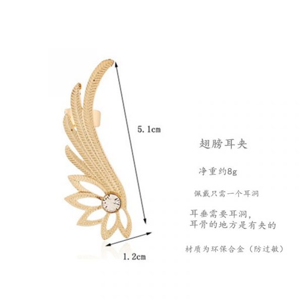 Add an ethereal flair to your look with this Golden Feather Wing Ear Cuff. Designed to trace the curve of your ear, it features intricate feather-like detailing and a sparkling crystal accent. Lightweight and stylish, this piece offers a bold statement without the need for multiple piercings—just one is enough. Crafted from eco-friendly alloy to help prevent irritation.