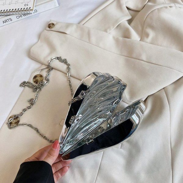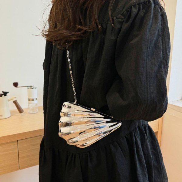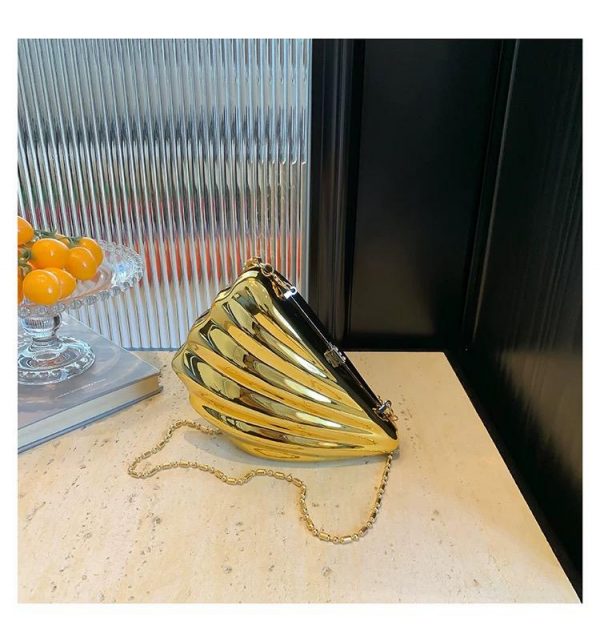 Turn heads with the Golden Shell Clutch — a dazzling statement piece inspired by the elegance of the ocean. This compact handbag features a radiant gold metallic finish sculpted into a seashell silhouette, blending luxury with artistic flair. Ideal for special occasions, red carpet moments, or adding a bold accent to your evening attire, this clutch comes with a delicate chain strap for versatile wear.