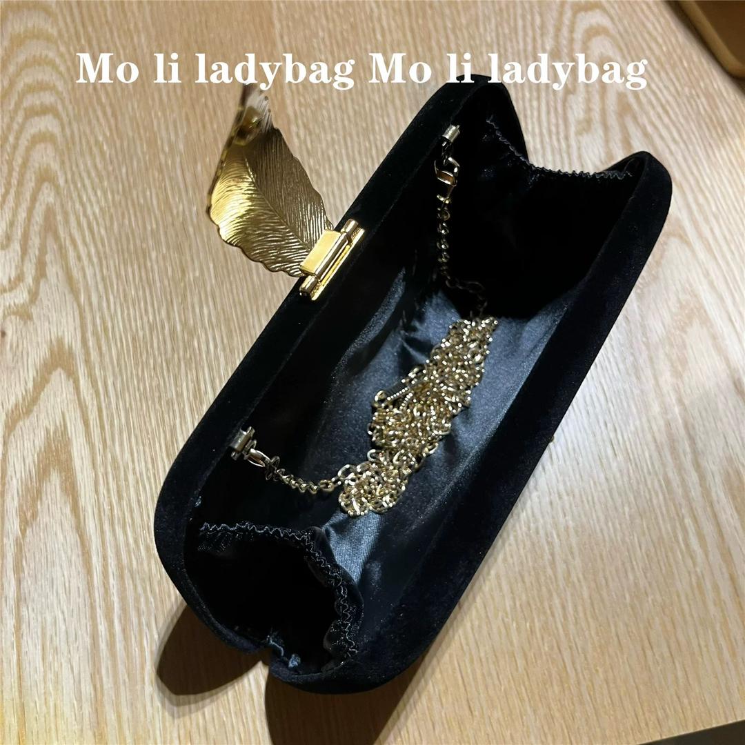 Elevate your evening ensemble with the Mo Li Luxe Leaf Clutch — where elegance meets artistry. Crafted with a minimalist silhouette in rich velvet black and pearlescent ivory finishes, this clutch is adorned with a striking gold-toned leaf clasp that adds a touch of nature-inspired sophistication. Perfect for galas, cocktail parties, or upscale dinners, the Mo Li clutch balances style and functionality in every detail.