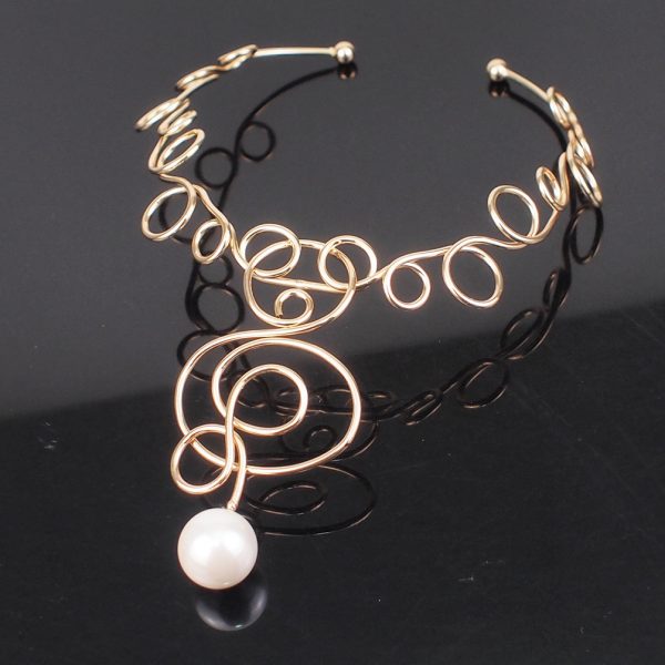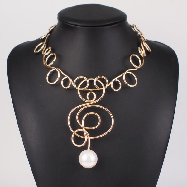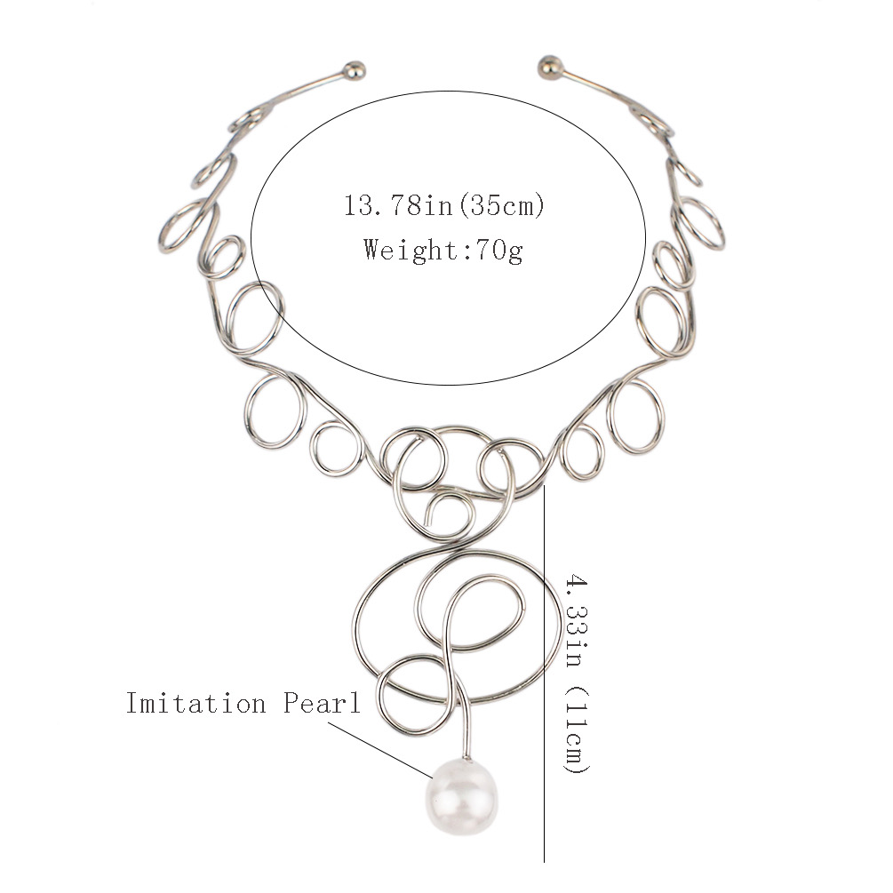 Turn heads with this avant-garde wire statement necklace, a perfect blend of art and fashion. Designed with freeform silver-tone loops that mimic abstract art, this sculptural piece features a single elegant imitation pearl drop that adds a touch of timeless grace.
