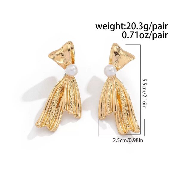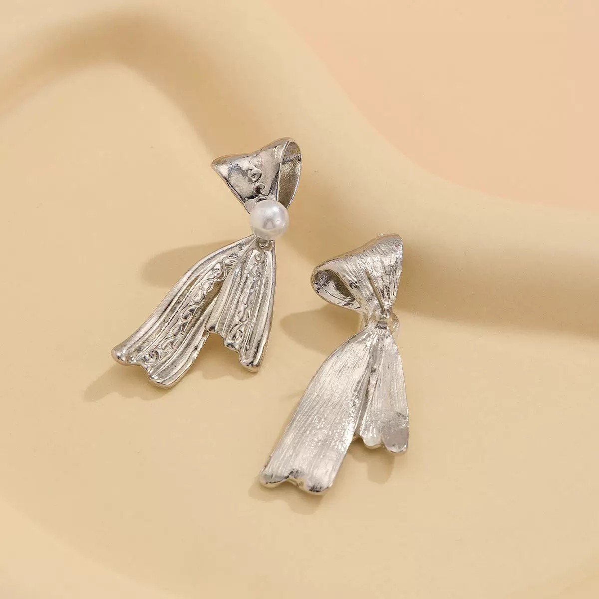 Elevate your look with these luxurious Ribbon Pearl Drop Earrings. Featuring an elegant bow-like design with flowing ribbon textures and a delicate pearl centerpiece, these earrings bring a graceful and feminine charm to any outfit. Perfect for weddings, evening events, or when you want to add a classy touch to your day.
