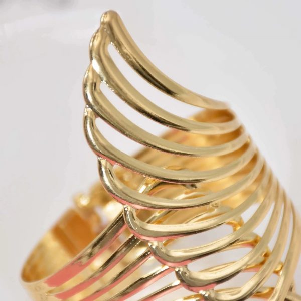 Elevate your style with the Winged Harmony Cuff, a striking piece that captures motion and elegance in one bold design. Crafted from polished gold-toned metal, this statement bracelet features fluid, feather-like curves that fan out dramatically, resembling angelic wings or ocean waves. The openwork structure adds a touch of delicacy while maintaining a strong sculptural presence. Ideal for evening glam or as a powerful centerpiece to a minimalist outfit.